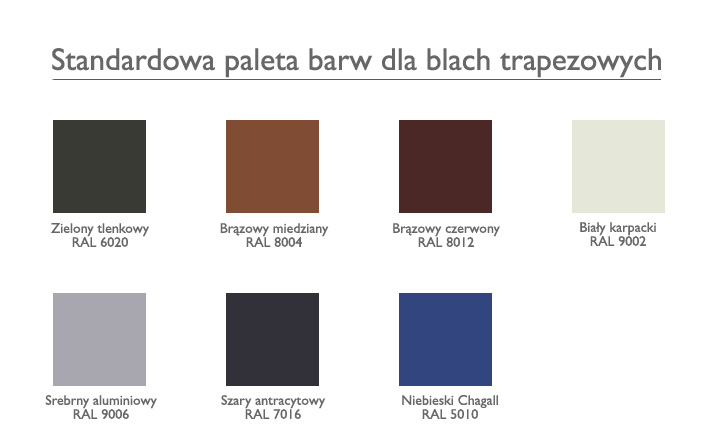 Istnieje możliwość wyboru kolorystyki z naszej palety kolorów standardowych, dobranej do Państwa hali.