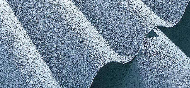 Die Beschichtung wird bei der Herstellung auf die Unterseite der Profilbleche kaschiert und absorbiert eventuell anfallendes Kondenswasser.